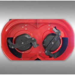 La tondeuse à gazon se fixe facilement au porte-outils à moteur Jansen MGT-600 et est immédiatement prête à l'emploi. Avec une largeur de coupe maximale d'environ 100 cm, même les surfaces plus grandes et difficiles d'accès peuvent être traitées en très peu de temps. L'herbe coupée est éjectée sur le côté ou, si vous le souhaitez, directement collectée dans le bac de ramassage fourni (env. 160 l). Vous vous épargnez ainsi un ratissage fastidieux. La tondeuse à gazon est équipée de 4 lames montées sur 2 disques rotatifs qui oscillent librement.